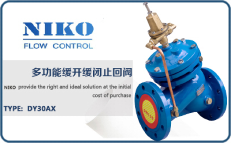 尼科DY30AX緩開(kāi)緩閉多功能止回閥安裝在市政、建筑、鋼鐵、冶金、石油、化工、煤氣(天然氣)、食品、醫(yī)藥、電站、核電等領(lǐng)域的取水、送水、潛水、污水泵房及石油、化工流體的輸送系統(tǒng)中,融電動(dòng)閥、止回閥和水錘消除器三種設(shè)備的功能于一體,能有效地提高系統(tǒng)安全可靠性,滿足系統(tǒng)自動(dòng)化控制要求。