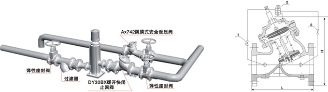 緩開快閉止回閥采用雙室驅(qū)動(dòng)裝置,Y型結(jié)構(gòu)。介質(zhì)在定向運(yùn)動(dòng)中具有半直線水流,過(guò)流量較大,壓力損失小,啟閉運(yùn)行平穩(wěn)、不產(chǎn)生壓力波動(dòng)等優(yōu)點(diǎn)。雙室驅(qū)動(dòng)裝置可作為一個(gè)整體拆卸,便于檢查,膜片采用尼龍強(qiáng)化橡膠制成,合用壽命長(zhǎng),閥瓣密封件可拆卸,維修更方便。