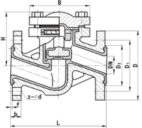 尼科升降式襯氟止回閥為直通式結(jié)構(gòu),襯氟閥瓣垂直于管路軸線作升降運(yùn)動。采用特殊模壓工藝,將氟塑料襯于閥體殼體內(nèi)壁,能耐強(qiáng)酸、強(qiáng)堿的腐蝕,流道光滑、密封性好、零泄漏。此閥門為自動閥門,啟逆止作用,水平安裝于工業(yè)管道中。