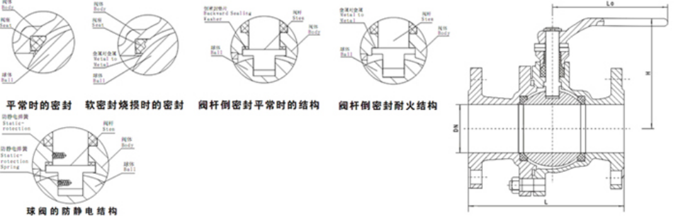 ①耐火結(jié)構(gòu):根據(jù)用戶的需要,球閥可設(shè)計成耐火結(jié)構(gòu),當(dāng)萬一發(fā)生火災(zāi)而使密封圈燒損時,球閥的各個密封部位均能形成金屬對金屬的硬密封結(jié)構(gòu),有效阻止介質(zhì)的擴散,防止火災(zāi)擴大;