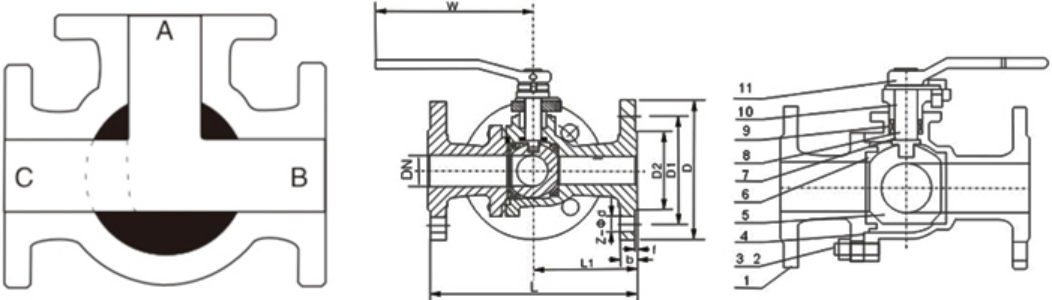 尼科T型/L型法蘭三通球閥構造: