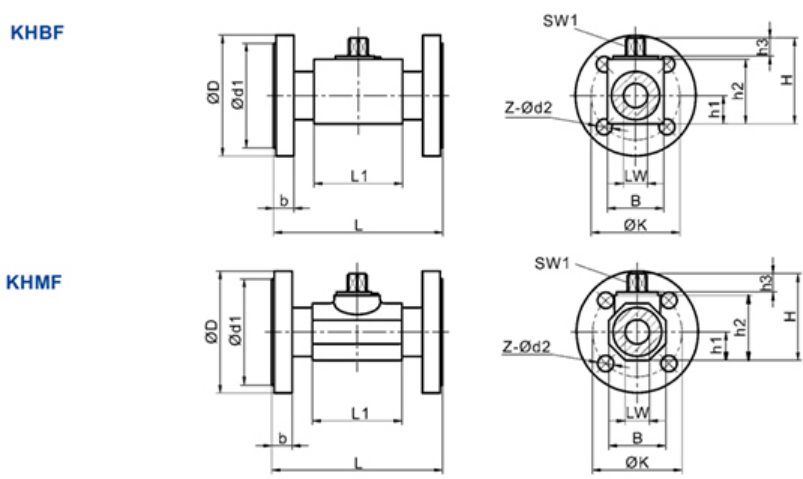 1、系列代號:KHBD(KHMF)系列法蘭式液壓球閥