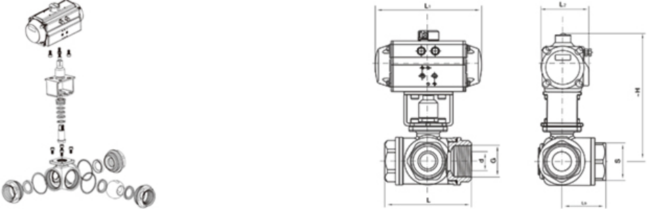 氣動螺紋三通球閥分為"L型氣動內(nèi)螺紋球閥"與"T型氣動螺紋球閥",L型適用于介質(zhì)的流向切換,能使相互垂直的兩個通道聯(lián)通,T型適用于介質(zhì)的分流,合流或流向切換。雙層閥桿填料符合德國泄露測試要求,在系統(tǒng)泄壓后無需拆下整個閥體就能進行檢查和維修。